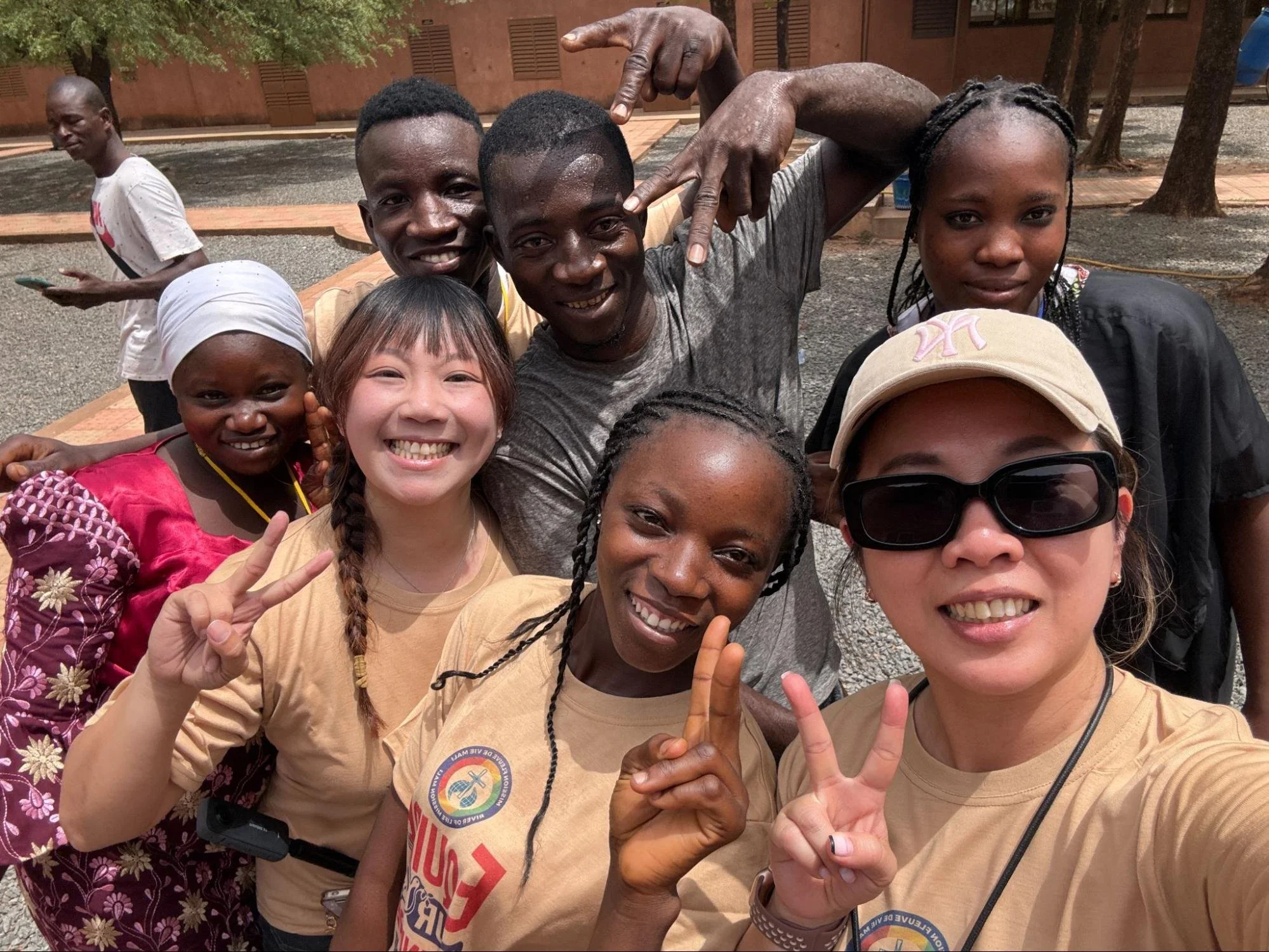 Since we arrived in Mali early in the morning, our first day’s schedule was originally meant for rest and adjusting to the time difference. But in the afternoon, on a sudden impulse, we decided to step out of the hotel and do a prayer walk toward the Independence Monument. Yet, a “city walk” in Bamako was nothing like what we imagined. Stepping out of the hotel meant passing through armed guards and gates, and outside was another world—red earth, crowded streets full of motorbikes and pedestrians. We even found ourselves walking against traffic on the highway! Children ran up to us asking for things or wanting photos. When we reached a small grocery store, hoping to buy fruit, it was dark and sparsely stocked. Just as we wondered what to do, the owner’s daughter, a Muslim girl learning Chinese, offered to guide us to a fruit stand. By God’s providence, we met her and were able to invite her to our upcoming Youth Conference.